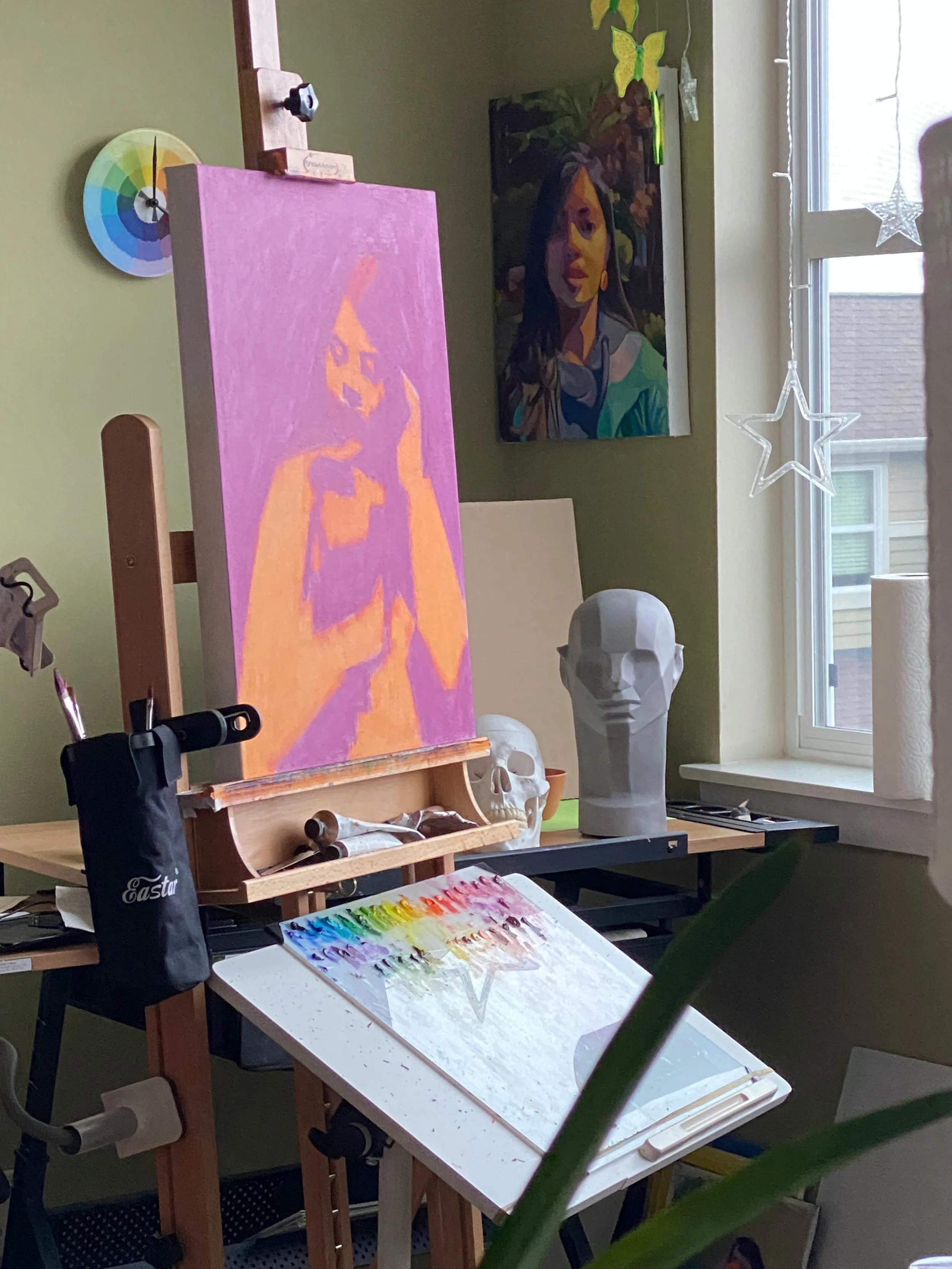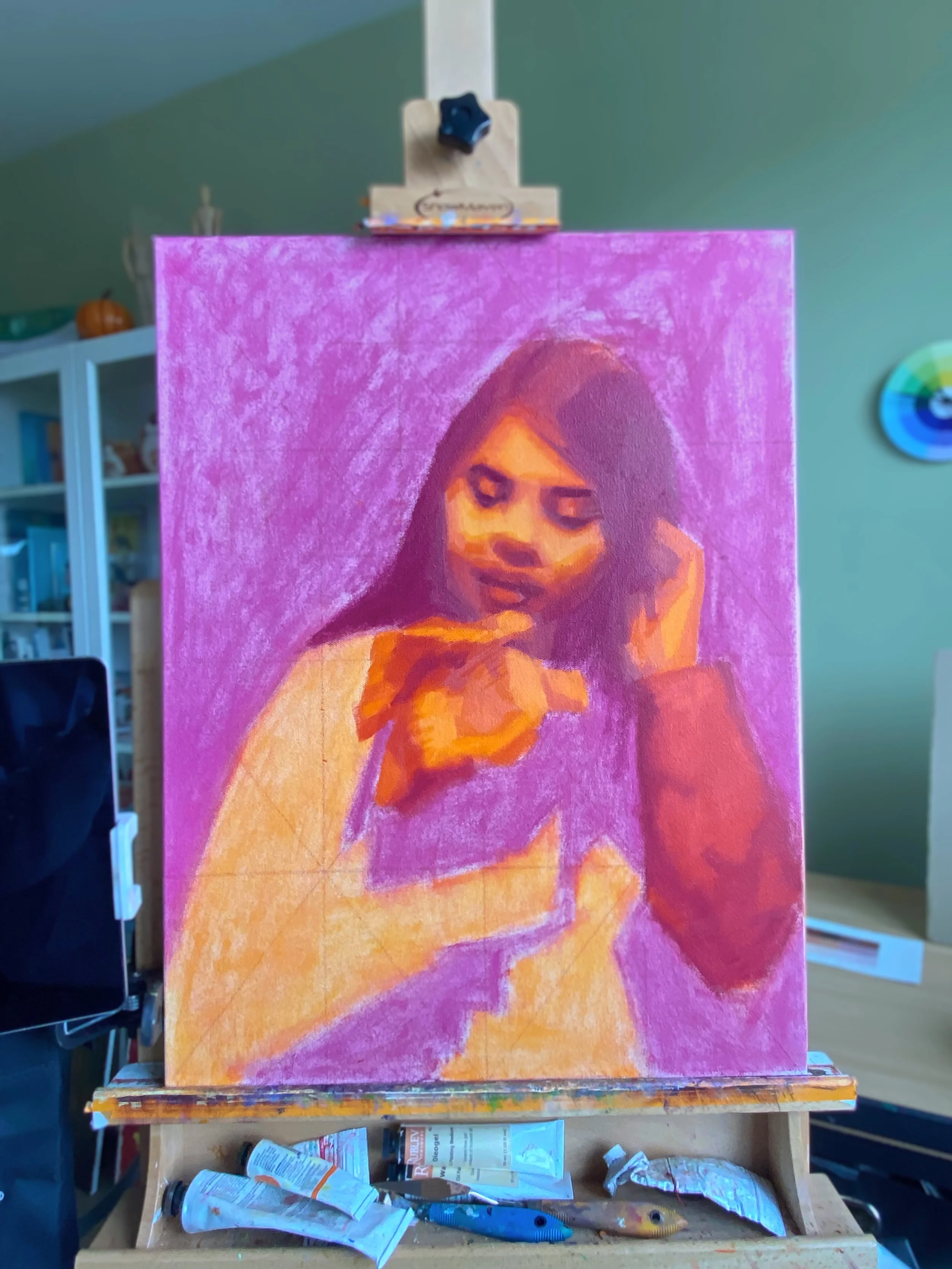To capture the chromatic value subtleties within my portrait, I started with 5 values between my orange and violet and eventually enlarged them to 9 values.