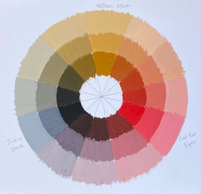 Next, begin filling the Oranges and their values in between Yellow Ochre and Cadmium Red Light