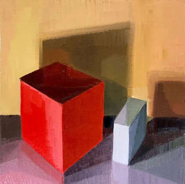 Set up simple still life objects such as boxes and/or round objects such as bowls, mugs etc.,